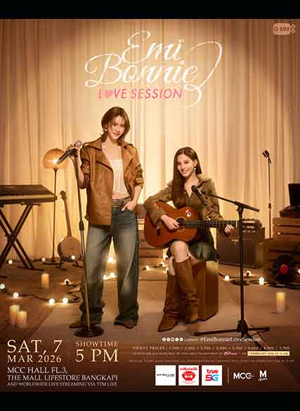 นักแสดงสาวมากความสามารถ “เอมี่ ทสร กลิ่นเนียม” และ “บอนนี่ ภัทราภัสร์ โบรัชตะสุวรรณ์” จาก “GMMTV” คอนเทนต์โพรไวเดอร์ชั้นนำของเมืองไทย ล่าสุดเตรียมมอบของขวัญให้กับแฟนๆ ควงคู่เปิดฮอลล์ Live Session สุดพิเศษครั้งแรก ในงาน “EMI BONNIE : LOVE SESSION” ที่ทั้งคู่ตั้งใจมาโอบกอดทุกหัวใจ ผ่านท่วงทำนองและบทเพลงแห่งความรัก ที่จะมาเติมเต็มทำให้บรรยากาศภายในงานเต็มไปด้วยความอบอุ่นหัวใจ พร้อมแสงสีเสียงสุดสเปเชียล ที่จะทำให้เหล่าแฟนๆ ฟินไปกับทุกโมเมนต์ โดยงานจะจัดขึ้น ในวันเสาร์ที่ 7 มีนาคม 2569 เวลา 17.00 น. เป็นต้นไป ณ MCC HALL ชั้น 3 เดอะมอลล์ไลฟ์สโตร์ บางกะปิ นอกจากนี้แฟนๆ จากทั่วโลกยังสามารถรับชมแบบเรียลไทม์ไปกับการชม Live Streaming ผ่านทาง “TTM LIVE” ที่สามารถรองรับผู้ชมได้ครอบคลุมทั่วโลกได้อีกด้วย
