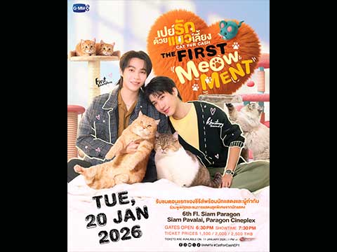 “เฟิร์ส-ข้าวตัง” พร้อมอัปเลเวลความเหมียว บอกรักผ่านภาษาแมวชวนแฟนๆ เปิดประตูคาเฟ่แมวสุดแปลกดูตอนแรกซีรีส์ “เปย์รักด้วยแมวเลี้ยง” ในงาน “เปย์รักด้วยแมวเลี้ยง THE FIRST MeOwMENT” วอร์มนิ้วรอกดบัตร 11 มกราคมนี้